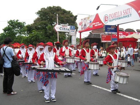 Pawai Mozaik yang digelar Pemerintah Kota Yogyakarta dalam rangka menyambut hari ulang tahun ke-254 berlangsung semarak, Kamis (7/10/2010). Ribuan warga memenuhi rute pawai sepanjang 3,2 km demi menyaksikan 1.500 peserta dari 38 kelompok yang berbaris dan menampilkan atraksi masing-masing.