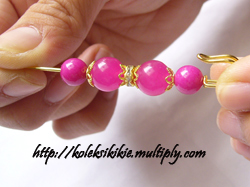 masukkan manik-manik sesuai pola yang kita kehendaki, ke dalam jarum peniti yang masih lurus.