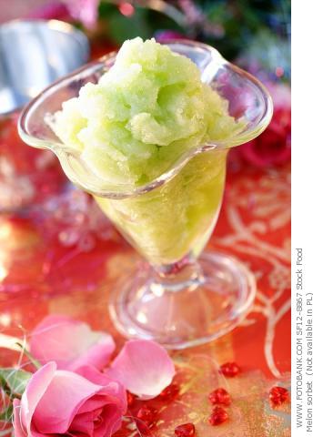 4. Penyajian: Siapkan gelas saji, keruk ice cream dengan sendok ice cream (lihat gambar). Agar lebih cantik, siram dengan sirup melon dan potongan buah melon atau jeruk sebagai pelengkap. Sajikan segera.