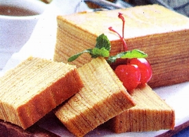 7. Jika adonan telah habis dan proses pelapisan selesai, panggang kue dalam oven dengan api atas dan api bawah hingga matang. Angkat, sajikan.