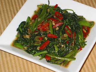 · Tutup penggorengan kurang lebih 5 menit atau sampai kangkung menjadi layu.