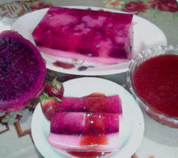 5. Taburkan irisan tipis buah naga merah merata, diamkan 2 menit
