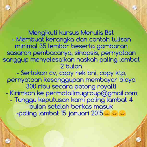 Bila berminat silahkan kirimkan persyaratan tersebut ke email kami permatailmugroup@gmail.com kemudian berikan pemberitahuan ke HP kami 081578796065 paling lambat 15 Januari 2015