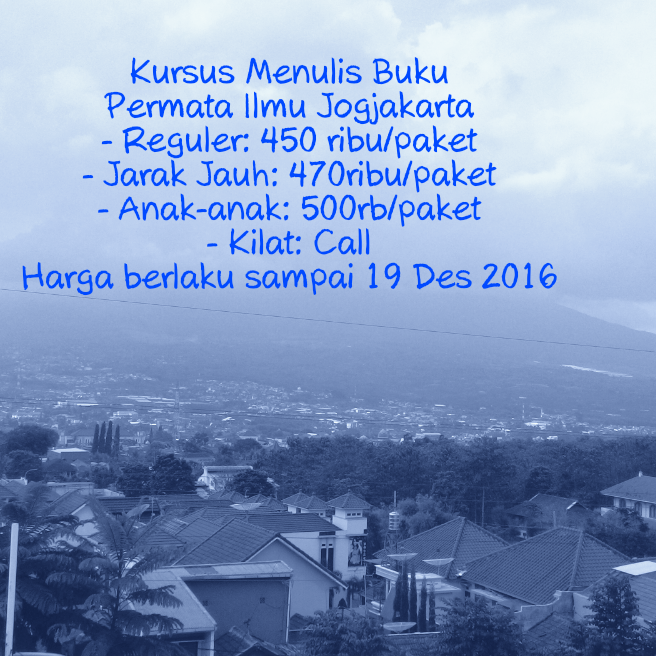 Permata ilmu jogjakarta kembali menyelenggarakan workshop menulis buku non fiksi secara gratis. Workshop ini terbuka untuk umum berusia 12 tahun keatas. Pendaftaran melalui email atau SMS. Ketik Daftar workshop agustus- Nama- Alamat. Workshop ini terbuka hanya untuk 20 orang pertama. Satu no Hp atau email hanya bisa mendaftar untuk maksimal 2 orang. Info lebih lanjut SMS atau telpon di 081578796065. Terimakasih, semoga informasi ini berguna untuk pembaca