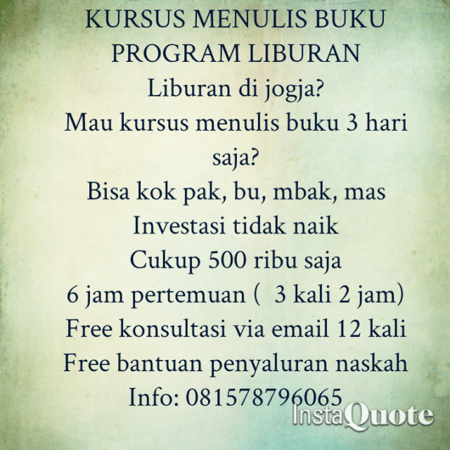 Pos ini dipublikasikan di Uncategorized dan tag KURSUS MENULIS BUKU, liburan, liburan di jogja, menerbitkan buku. Tandai permalink.