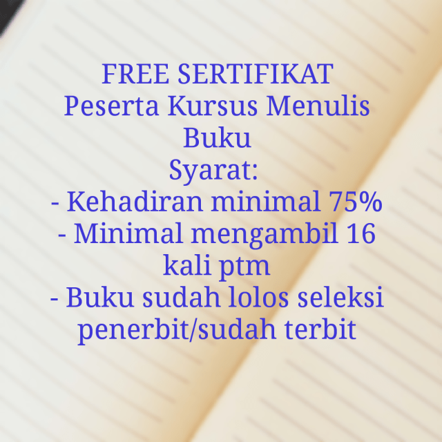 Sering calon peserta kursus menulis buku bertanya tentang sertifikat, apakah kursus menulis buku di permata ilmu mendapatkan sertifikat? Jawabnya iya, namun dengan syarat syarat tertentu yang bisa anda lihat di bawah ini, namun jika anda tidak memenuhi syarat syarat di bawah ini anda tidak bisa mendapatkan sertifikat namun bisa mendapatkan surat keterangan telah mengikuti kursus menulis buku dengan syarat telah mengikuti kursus minimal 12 kali ptm dengan kehadiran minimal 75%