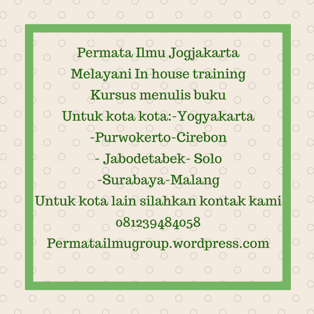 Permata ilmu jogjakarta juga menerima undangan pelatihan menulis buku di luar jogjakarta. Untuk biaya pelatihan sangat kompetitif. Insya Alloh anda tidak akan rugi, bisa mendapatkan sesuai ekspektasi anda. Berikut biaya investasi kursus menulis buku di luar kota yogyakarta. Harga berikut ini adalah harga obral sampai 30 oktober 2019, setelah itu kembali ke harga normal: