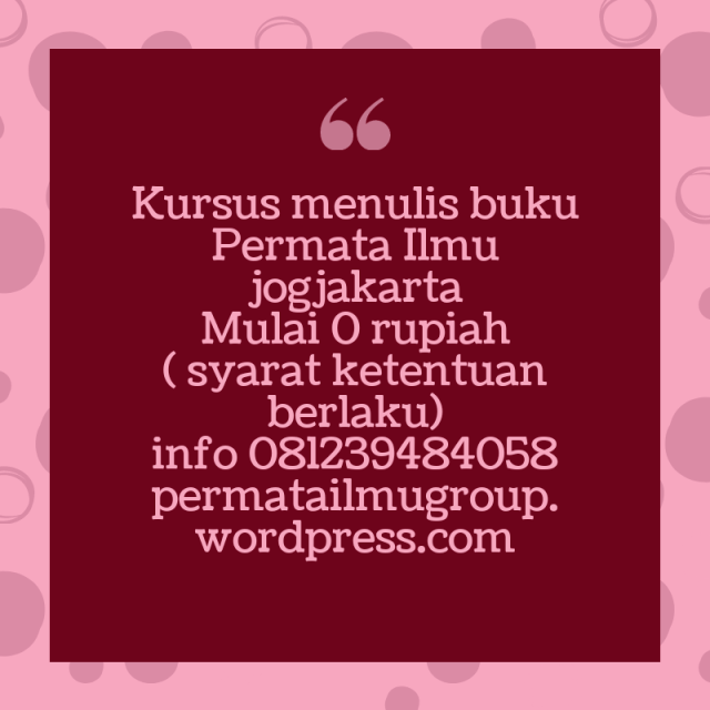 Kriteria naskah yang bagus ada 4 hal, 2 diantaranya akan saya sampaikan di weblog ini, sedang 2 sisanya akan saya simpan dulu, spesial saya buka bagi anda yang benar benar berminat kursus menulis buku di permata ilmu jogjakarta. Biayanya mulai 0 rupiah saja, sampai 800ribu rupiah untuk kursus reguler nya. Info lengkap silahkan hubungi kami di 081239484058