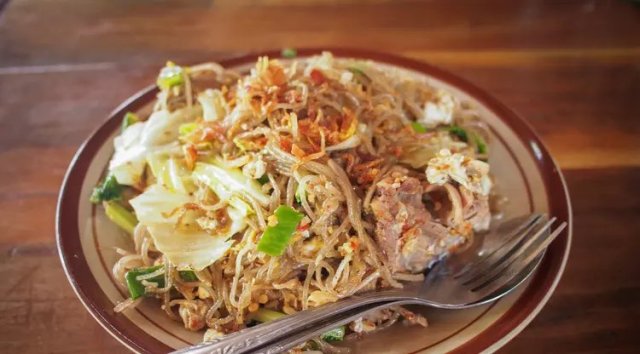 5. Sajikan mi lethek goreng dengan taburan bawang goreng.