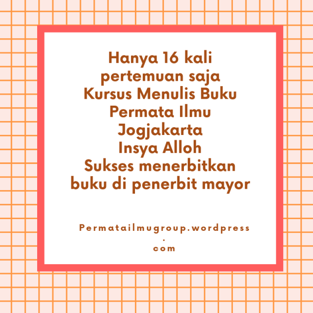 Dahulu, saya tidak memberikan aturan ketat dalam kursus menulis buku khususnya tentang jadwal kursus privat yang bisa suka suka hati. Namun demikian, ternyata banyak peserta yang kurang disiplin sehingga ini mungkin menjadi salah satu faktor pemicu kegagalan mereka. Karena tidak disiplin, kadang setelah beberapa kali peetemuan ada saja alasan menunda nunda waktu, dengan jeda 2 minggu, 3 minggu bahkan 1 bulan baru kursus pertemuan berikutnya. Kursus menulis buku insya Alloh akan lebih berhasil jika anda disiplin sesuai jadwal. Selesaikan 16 kali pertemuan secara teratur seminggu sekali. Insya Alloh naskah anda selesai dan bisa menembus seleksi penerbit dengan baik. Karena itu jika tidak benar benar penting, anda tidak perlu ijin. Permata ilmu jogjakarta untuk kursus menulis buku ini masih memberi kesempatan 2 kali ganti jadwal per paket, jadi untuk 16 kali pertemuan maksimal bisa ganti jadwal 4 kali. Sisihkan waktu anda, insya Alloh sukses menanti anda