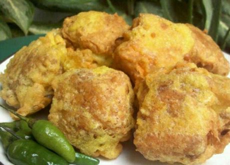 - kemudian buat bahan celupan dengan mencampurkan tepung beras, ketumbar, bawang putih, tepung terigu, air dan tambahkan garam lalu aduk hingga semua tercampur dengan merata