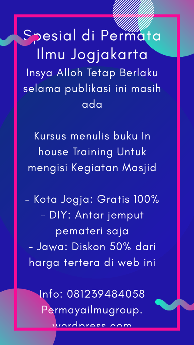 Anda masih bingung soal menulis? Ikuti kursus menulis di permata ilmu jogjakarta. Permata Ilmu jogjakarta: Kursus menulis, kursus menulis buku, kursus menulis untuk anak, kursus menulis artikel pokoknya suka suka anda, silahkan komunikasikan kebutuhan kursus menulis anda bersama kami