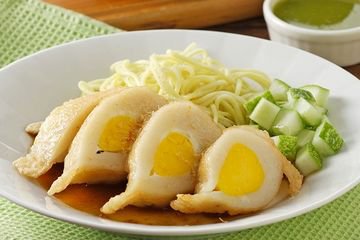 9. Sajikan pempek bersama cuko, sambal, dan pelengkap.