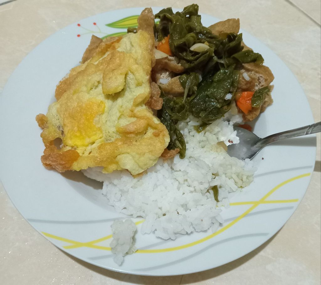 Bahan: 4 siung bawang putih, 3 siung bawang merah, 1/sdt terasi panggang, 1/2 sdt garam, 1/4 sdt gula jawa, 1/4sdt kaldu jamur, 4 sdm minyak untuk menumis, 25ml air, 300g genjer, 3 buah cabai rawit, 1 lembar daun salam, 3 biji tahu pong, cuci dan potong potong