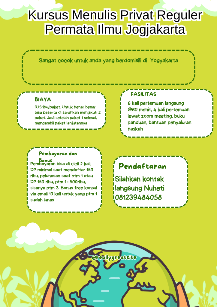 Jika anda di jogja, saya sarankan anda nengambil program privat reguler. Pertemuan yang dilakukan ada 2 macam yakni pertemuan langsung dan pertemuan dengan zoom meeting. Jumlah pertemuan sesuai poster di atas