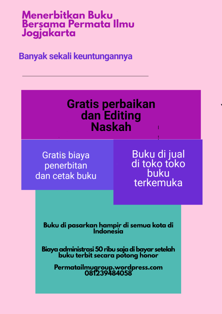 Permata Ilmu Jogjakarta menjembatani calon calon penulis profesional untuk menerbitkan naskahnya. Mungkin banyak diantara pembaca weblog kami sebenarnya memiliki kemampuan yang baik dalam menulis tapi masih kurang bisa menjelaskan suatu permasalahan dengan baik, kurang bisa mengemas tulisan dengan baik karena itu berkali kali di tolak penerbit. Memang, kalau demikian rekomendasi pertama saya adalah kursus dulu baru menerbitkan buku, kami juga menyediakan kursusnya. Namun demikian, jika anda tidak mau kursus dulu, kami juga tetap memberi kesempatan anda untuk menerbitkan buku lewat kami. Untuk detail caranya bisa anda buka di halaman lowongan weblog ini dengan klik