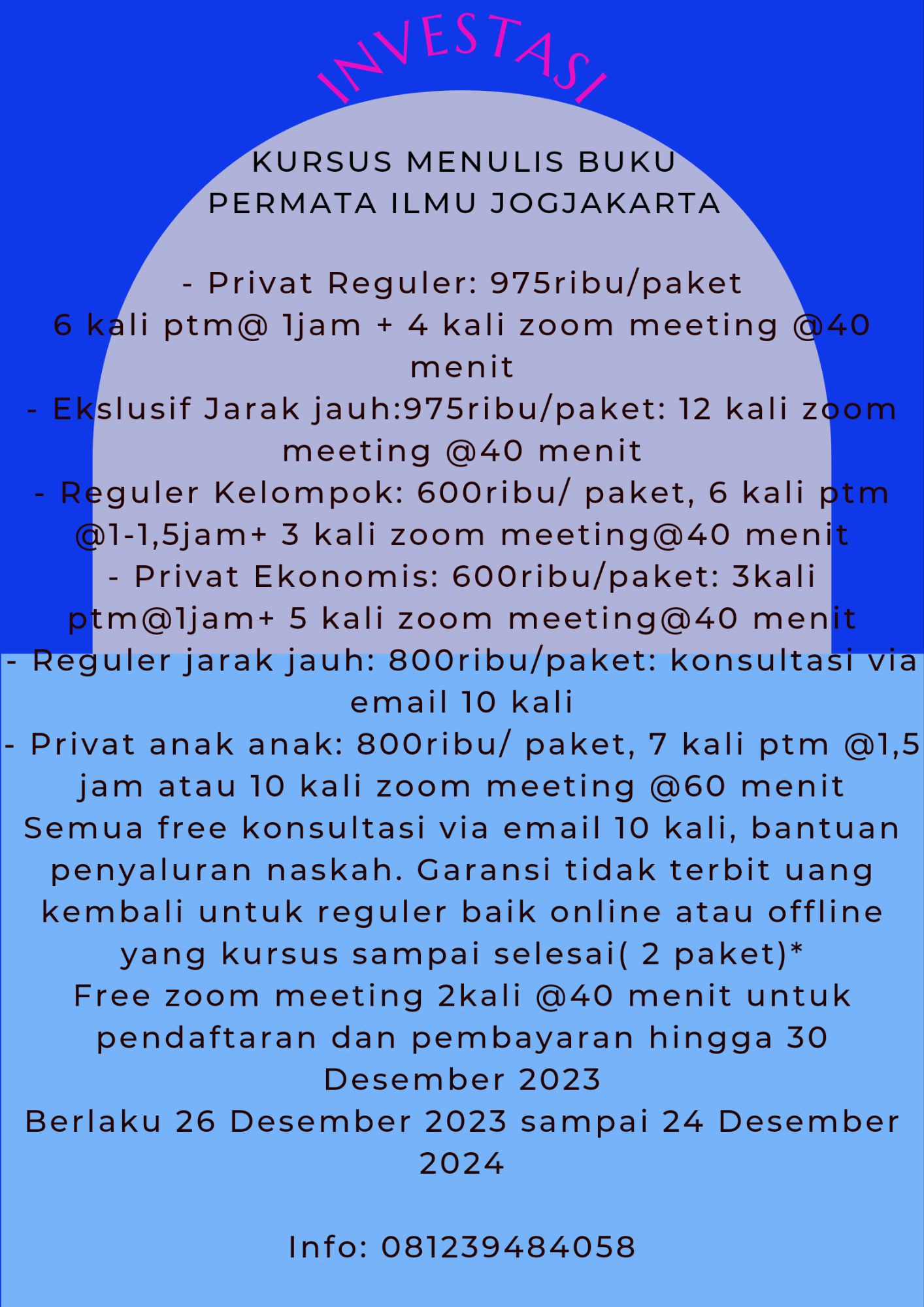 Untuk lebih mengetahui dengan detail paparan tersebut, anda dapat mengikuti kursus menulis buku di permata ilmu jogjakarta