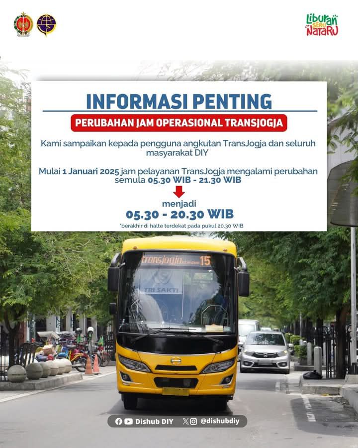 Ada perubahan jam operasional Trans jogja tahun 2025, yang semula sampai jam 21.30 sekarang menjadi 20.30 dan pada malam tahun baru (31 Januari 2024) operasional Trans jogja sampai jam 18.00 saja