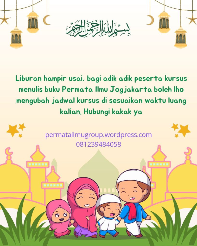 Setelah libur lebaran, mulai hari ini kami mulai kegiatan penuh hari ini, jadi semua layanan sudah kami buka normal kembali. Sebentar lagi kerja akan masuk dan anak anak mulai sekolah kembali, untuk itu bagi yang memiliki jadwal kursus mengganggu jam kerja, kuliah atau sekolah anda bisa mengatur ulang jadwal anda. Sukses selalu ya