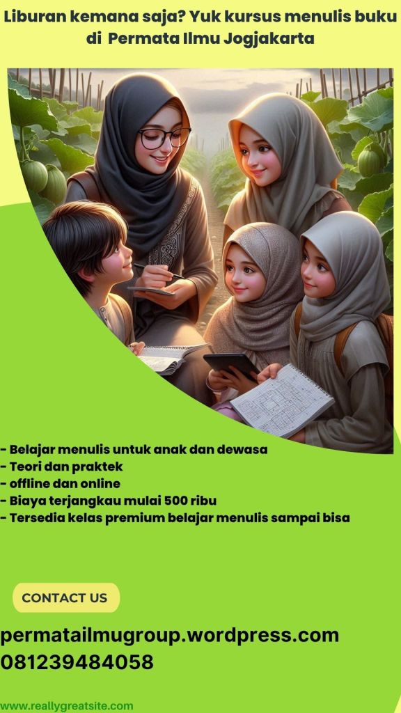 Jika peserta mengambil paket sampai bisa, setelah selesai materi di atas kami akan menawarkan anak menulis beragam tulisan yang cocok untuknya dengan berbagai tema sehingga anak mampu menulis cerita atau bahkan tulisan non fiksi melebihi teman teman seusianya, mari ayah, bunda daftarkan putra putri anda kursus menulis buku di Permata Ilmu Jogjakarta