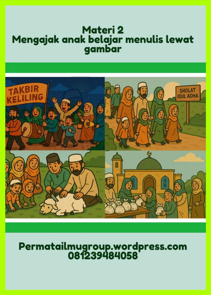 - Materi 2: Mengajak anak belajar menulis lewat gambar ( 4 kali pertemuan)