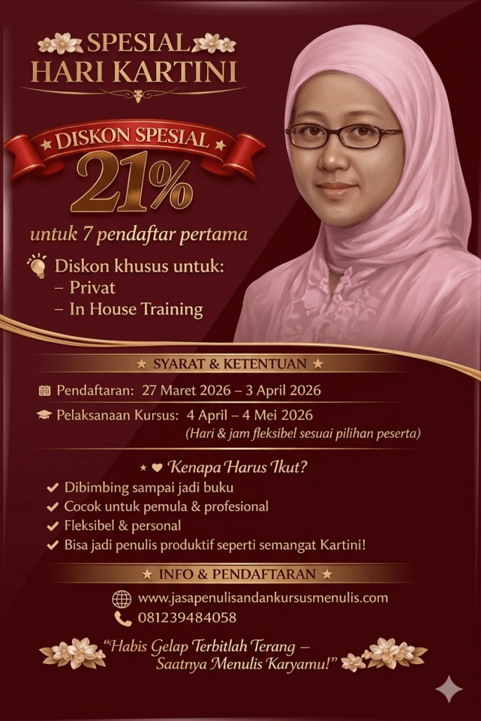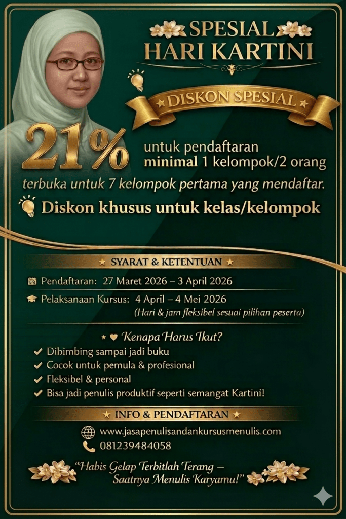 ” Semangat menulis buku, seperti semangat kartini, pastikan bukumu terbit tahun ini juga”